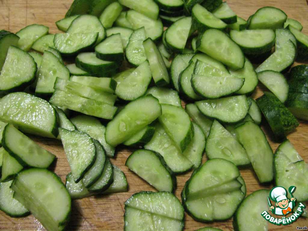2. Яйца порезать не очень мелко. Огурец - полукольцами.