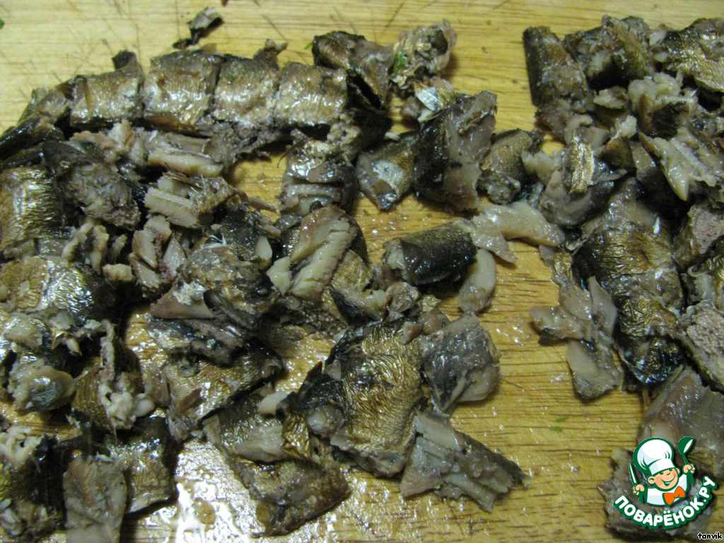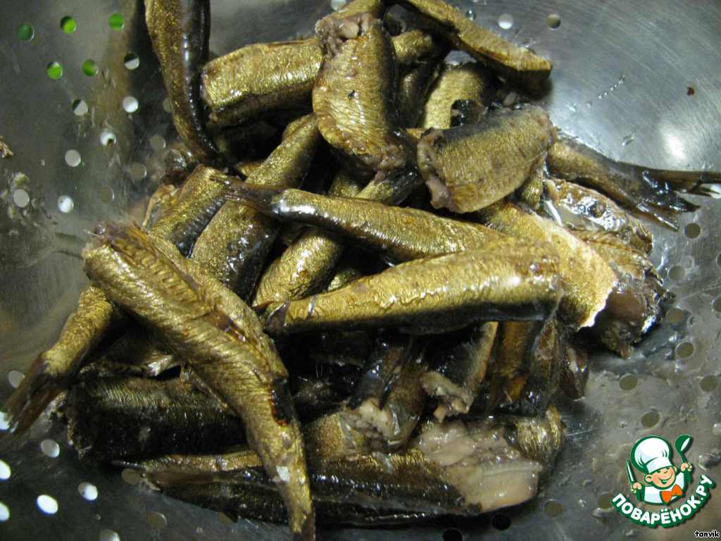 3. Шпроты откинуть на сито и дать стечь маслу.