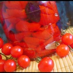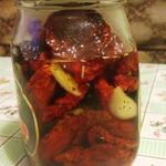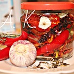 [+5]в баночку добавляю острый красный перчик и веточку свежего базилика или орегано.