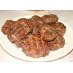 Приготовить мясной фарш, добавить в него мелко нарезанный зеленый лук (предварительно перебранный и промытый) или головку натертого репчатого лука и все это хорошо перемешать. Затем разделать из фарша шарики весом 20-30 г каждый, обвалять их в муке и со всех сторон обжарить в масле на разогретой сковороде. Обжаренные тефтели сложить в неглубокую кастрюлю, добавить томат-пюре, стакан мясного бульона, 1-2 лавровых листика, 5-6 горошин перца (или десятую часть стручкового), 2-3 дольки растертого с солью чеснока, накрыть кастрюлю крышкой и тушить тефтели на слабом огне 10-20 минут, потом заправить солью, ложечкой острого томатного соуса и при подаче к столу посыпать мелко нарезанной зеленью петрушки. На гарнир дать отварной рис, гречневую кашу, жареный картофель или картофельное пюре. На 500 г мяса (мякоти) - 100 г зеленого лука или головку репчатого, 1/2 стакана томата-пюре, 100 г белого хлеба, 2 ст. ложки муки и 2ст. ложки масла.»
