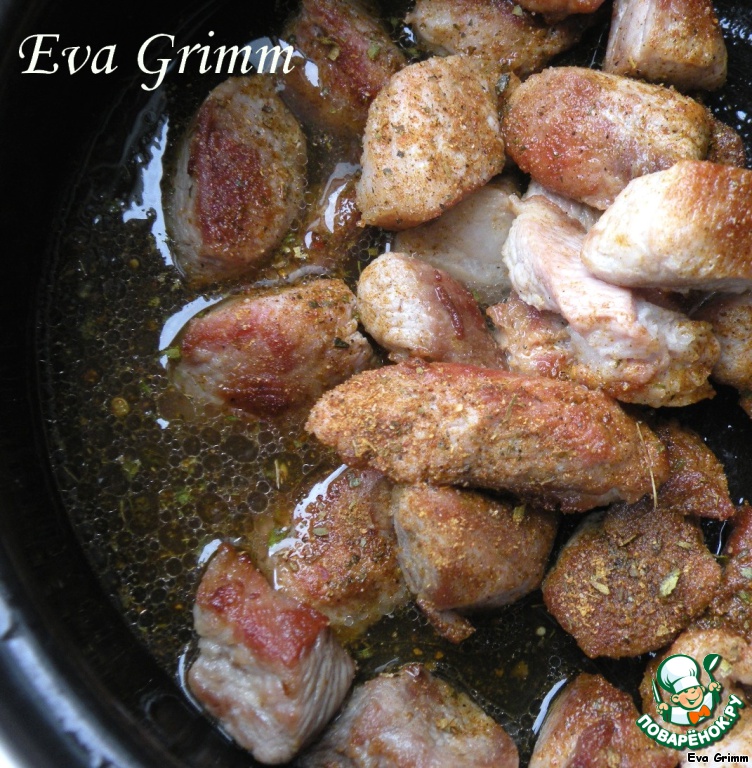 Итак. Свинину (говядику, курицу) обжариваем на масле на сильном огне до румяной корочки. |