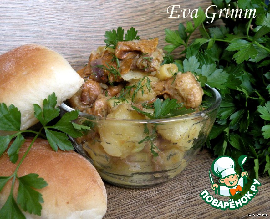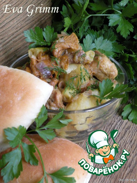 Рецепт "Жаркое с лисичками и желтой спаржевой фасолью "Ожерелье"":