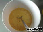 Яичный желток взбить с кетчупом и добавить измельченный чеснок.