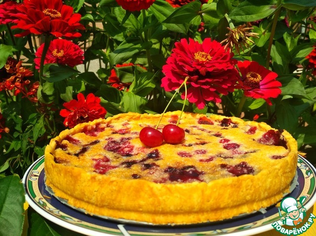 Рецепт "Вишневый пирог в сметанной заливке":