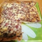 Пирог выстоял ночь в холоде, но нарезать аккуратно не получилось, поэтому фото кусочка нет. Думаю, я слишком тонко раскатала тесто, поэтому корж сильно крошился. Но, несмотря на это, пирог был "сметён" семьей и гостями. Даже маленькая дочка, откладывая, правда, в сторону вишню (для неё она кислая), съела весь свой кусочек.