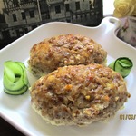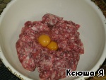 В свино-говяжий фарш (я купила готовый) вводим 2 яйца. -
