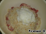 Крошку батона и измельчённый лук с чесноком добавить к фаршу.