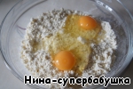 Добавить яйца, соду или разрыхлитель, перемешать.