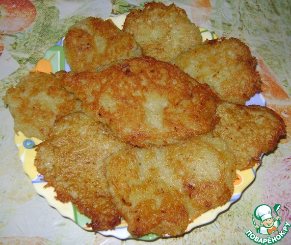 [+2]Но, честно говоря, после отжатия и добавления потом туда яйца и кефира, смесь снова становится мокрой и потом всё это стекает. Остаётся только картошка с луком. Получается обычная жареная картошка, как если бы просто её пожарить, помешивая, на сковороде, без всяких тёрок и кефира. К тому же, смесь не формируется (терла на средней тёрке).