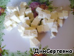 Брынзу нарезаем кубиками поменьше, грань около 1 см.