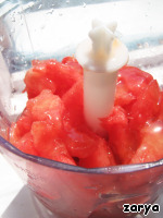 Мякоть арбуза (можно несладкого, который выкинуть жалко, а есть - неинтересно) очистить от косточек, измельчить в блендере.