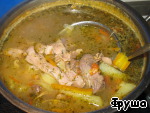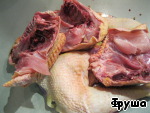 Берем часть петуха (около 0,6 кг), моем, заливаем водой (2, 5 л.) и доводим до кипения. Когда вода закипит, необходимо обязательно снять пенку.