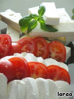 Также подготовим начинку. Для этого помидоры и моццареллу нарезать кружочками. А фету брусочками, примерно 1 см толшиной.