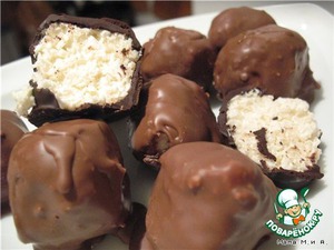 В порядке эксперимента сделала небольшие конфеты, которые имитируют всем известный батончик "Баунти". Очень вкусно! Если бы еще капельку кокосового ликера - не отличались бы от оригинала.