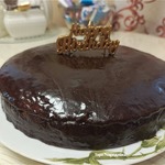 Как назло мой телефон взбунтовался и не смог передать всей красоты полученного результата. Готовила точно по рецепту. Стакан использовала 250 мл, форма диаметром 24 см. Выпекала 30 минут при 180 градусах. Получился замечательный вкусный торт. Глазурь шикарная, блестящая, гладкая. После ночного отдыха в холодильнике хорошо застыла, но при нарезке не ломалась и легко резалась. Семья осталась довольна.