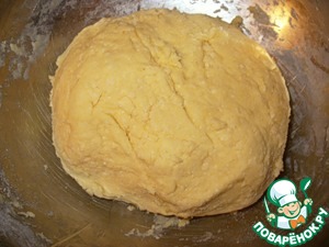 Масло растереть с сахаром. Добавить яйца, творог, разрыхлитель и муку, замесить тесто.