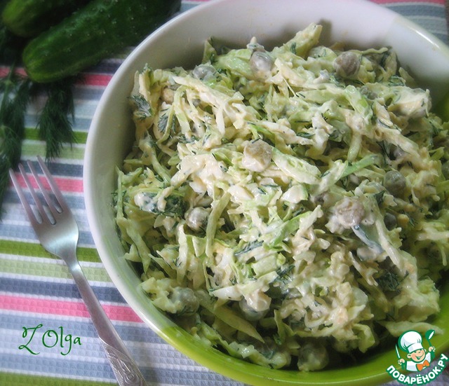 Рецепт «Салат с огурцами, горошком и яйцами»: