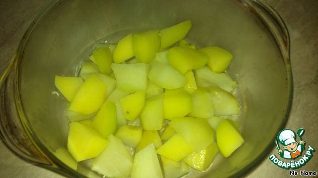 Картофель надо порезать небольшими дольками и отварить в течение 5 минут в подсоленной воде.