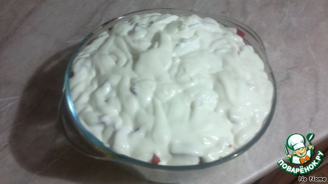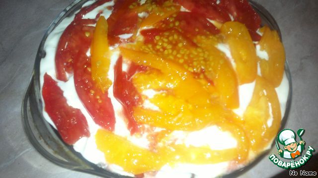 ...а поверх сметаны выложить помидорную массу или кружочки помидоров.
