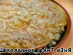 • Лук нашинковать. Приготовить сковороду, в которой вы могли бы сначала обжарить на плите а затем поставить эту сковороду в духовку. Если таковой нет, то сначала обжарте а затем переложите в огнеупорную форму.