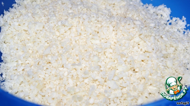 Очистить капусту от больших стволов и листьев. Измельчить в блендере. Советую — измельчите ещё мельче, чем у меня. в следующий раз я так и сделаю.