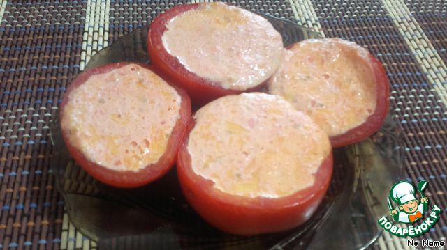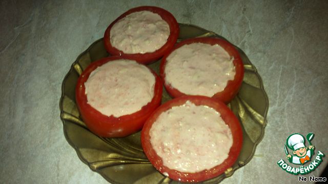 Все тщательно перемешать. Заполнить смесью помидоры.