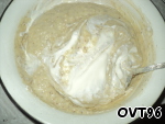В последнюю очередь добавляем сметану. Получается тесто по густоте как сметана.