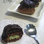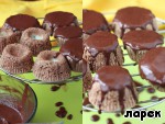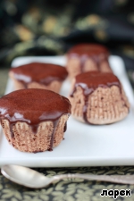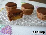 Выпекать при 180 градусах. Остудить, перевернуть, снять бумажные манжетки. Несмотря на то, что у некоторых маффинов донышко оказалось пудинговое, начинка не вытекает. Несколько кексов я оставила неперевернутыми, остальные перевернула и покрыла глазурью по рецепту Иришы (irina_vip) - 3 ст. л. какао-порошка, 3 ст. л. сахарной пудры, 1 ст. л. крахмала и 3 ст. л. ледяной воды.