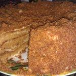 Тесто делается просто, выпекается быстро, крем самый простой – сметанный. Но вот результат… Очень нежный, ароматный пирог с медовой ноткой и ореховым послевкусием… Незабываемо!