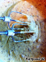 Затем орехи. Теперь перемешиваем миксером аккуратно, на самой низкой скорости.