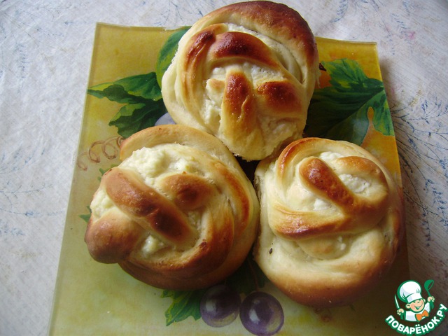 рецепт из серии "Буду готовить еще". Булочки восхитительно вкусные, но фото не выкладываю, так как получились корявенькие из-за того, что творог все же был жидковат, вкуса не испортило, но вот с эстетической точки зрения нервы мне помотал Вот приготовлю с "правильным" творогом, непременно похвастаюсь. Тесто нежное, вкусное, а в сочетании с начинкой вообще ням-ням . Забрала в КК, и с меня красивый фотоотчет.