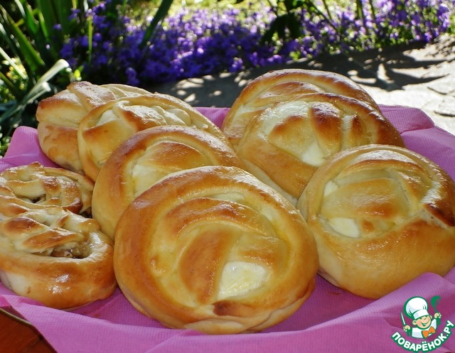 А вот и я, как и обещала с фото. Очень вкусно!!! Тесто, начинка, внешний вид, все супер! Тесто ставила побольше, поэтому получились и булочки и небольшой пирог. Фото есть на моей страничке