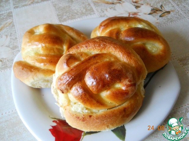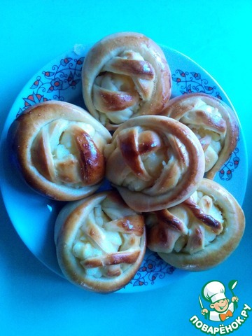 Начинку тщательно перемешиваю. Если начинка получится у Вас жидкая - не беда! Добавьте в начинку две столовые ложки муки, перемешайте массу и нагрейте в несколько приемов в микроволновой печи, каждый раз перемешивая. Начинка загустеет, только перед формовкой выпечки дайте такой начинке остыть.