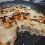 Слить выделившийся соус и сохранить его. Освободить пирог на блюдо.
