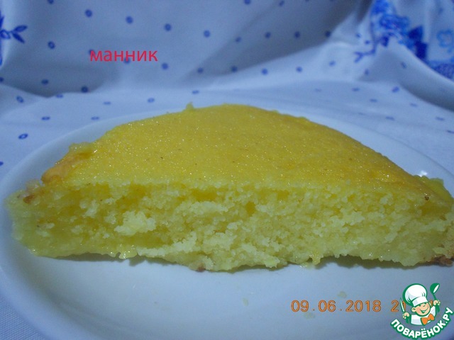 Манник получился бархатный, влажный и более нежный, чем на кефире.