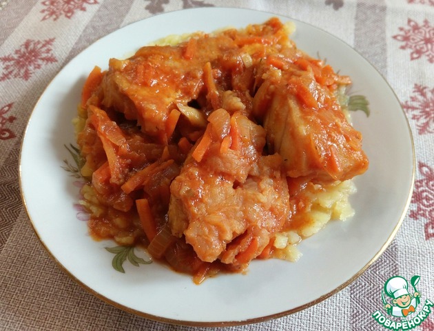 Затем я беру другую кастрюльку, укладываю слой рыбы, сверху слой маринада, опять слой рыбы, опять маринад. Ставлю кастрюльку на маленький огонь минут на 20 потушиться, чтобы рыбка пропиталась маринадом.
