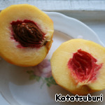 Затем нужно избавить персики от кожицы - пробланшировать в кипятке полминуты и сразу же опустить в холодную воду. Кожица легко снимется, но если этого не случилось, нужно просто срезать ее ножом, как с картошки. -