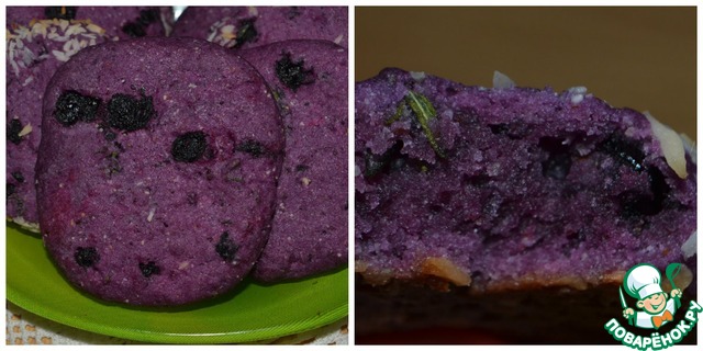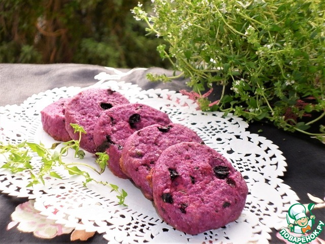 Продолжая тему ягоды+ароматные травы... Чтобы добиться такого цвета, печенье не обязательно печь с черникой, подойдет и черная смородина. Очень мягкое, нежное, с ласковым вкусом печенье.