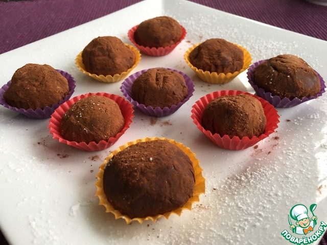 5. В тарелочку насыпать какао, обкатайте по столовой ложки шоколадной массы в какао. Хранить в холодильнике 1 неделю.