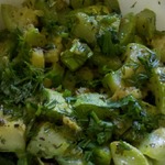 Мелко режем петрушку или укроп (что вам больше нравится), добавляем к кабачкам.
