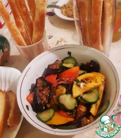 Холодные блюда в уйгурской кухне подразделяются на два вида: блюда из различных сырых овощей и холодные блюда из вареных и обжареных овощей. Этот салат, как раз, относится ко второму виду. Посмотрела в словаре перевод слова «чайзя» - оказалось баклажан, хотя в другом источнике написано, что правильно называть этот овощ «педигян». Я мудрствовать не стала, и назвала салат так же, как он называется в меню заведения. Заказывала не один раз, затем стала готовить дома. Обычно из баклажан делала рулетики или послойный салат, но этот способ помогает сэкономить уйму времени. Итак, для тех, кто дорожит временем и при этом хочет разнообразить привычное меню - это блюдо подходит самым наилучшим образом!