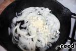 Лук нарезать полукольцами и обжарить на подсолнечном масле (конечно, лучше взять оливковое, но у меня, увы, закончилось), добавить к нему мелко рубленый чеснок. -