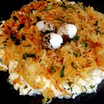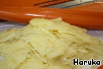 Картофель почистить, нарезать очень тоненько или натереть на терке для корейской моркови.