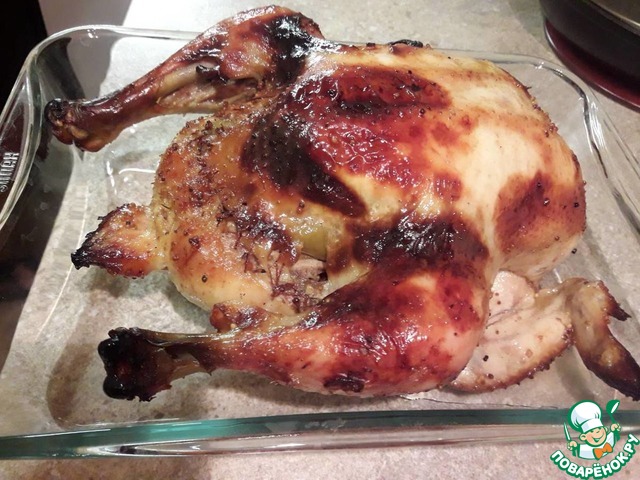Эта курочка была также невероятно вкусна. Только я очень хотела, чтоб она дождалась мужа в духовке... поэтому она несколько более загорелая)))
