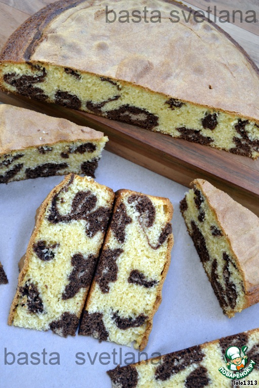 Очень благодарна автору рецепта – испанскому кулинару Mabel Mendez. Восхищаюсь ее кулинарным талантом! Кекс с сюрпризом – разрез напоминает леопардовую раскраску. В этой же технике можно приготовить кекс или пирог с тигровым рисунком, с рисунком зебры или далматинца (используя только два цвета) и т. д. Рецепт кекса привожу авторский, а, вообще-то, можете приготовить такой кекс по вашему любимому рецепту. Итак, приступим!