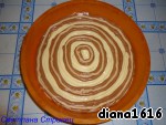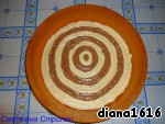 Опять тоненько наносим на темные круги светло-коричневое тесто.