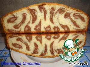 В принципе, такой кексик можно испечь и в прямоугольной или квадратной форме, только линии в такой форме нужно проводить прямые.
