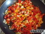 Пока варится картофель, на сковороде тушим морковь, болгарский перец и лук до золотистого цвета (поджарку я обычно делаю на топленом масле).