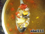 Супы с рисом или макаронами изрядно поднадоели - вот и решила приготовить гречневый суп. Для разнообразия добавила оливок и красного болгарского перца. Полученный результат напомнил своими красками о приближающейся осени.