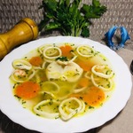 Рецепт «Суп из цветной капусты с кальмарами или креветками»: